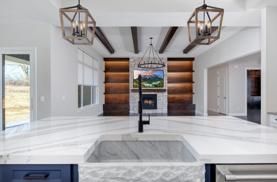 - Large kitchen island designed for gathering and entertaining