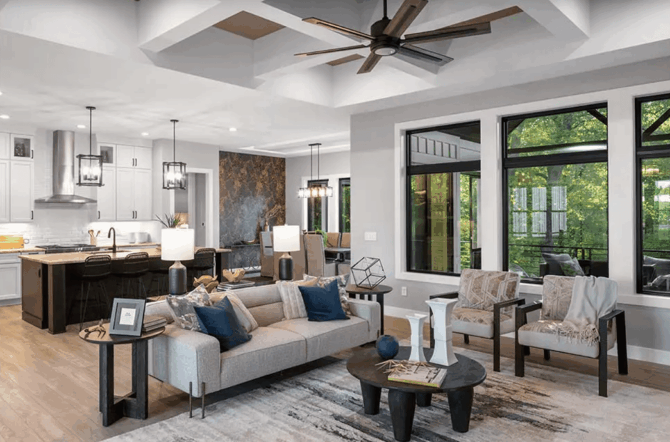 - Open-concept kitchen, dining, and great room layout
