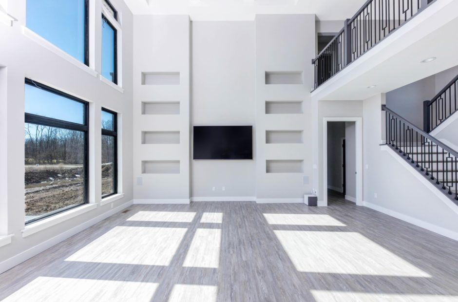 - Dramatic two-story great room with expansive windows for abundant natural light